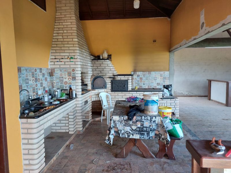 Chácara com casa nova avarandada com luz de presença, área de lazer completa com amplo salão com churrasqueira, forno e excelente vista, imóvel com sala espaçosa, cozinha com dispensa, três dormitórios, sendo uma suíte com closet, lavanderia.